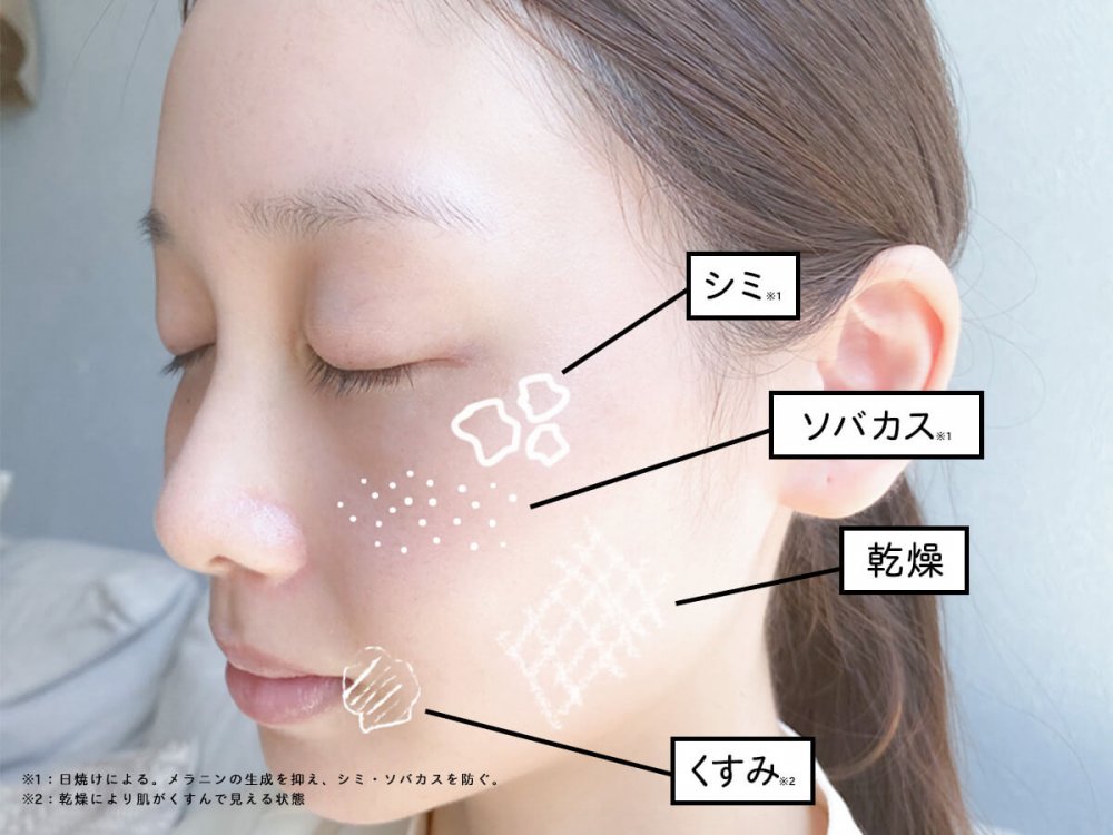 *5シミの根本:シミの予備軍のこと。メラニンの生成を防ぎ、シミ。ソバカスを防ぐ。
